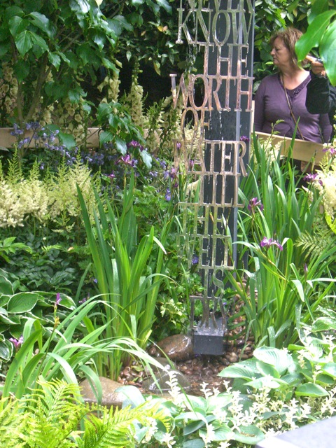 This "Artisan Garden" was an outdoor small-scale garden tucked away in a hilly part of the display area of Chelsea. I was taken with this waterfall/fountain. It reads "We never know the worth of water till the well is dry," a 1732 quote by Thomas Fuller.